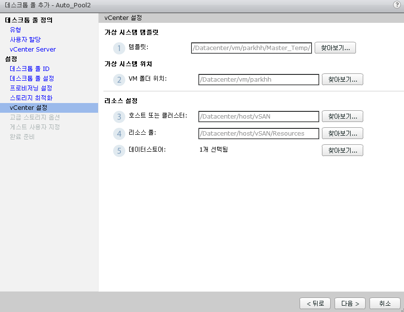 - OS 설치, VM Tools 설치, OS Optimizing, 기본 Profile 설정, Util 설치, Hostname 변경, 도메인 가입, View Agent 설치 작업이 완료된 Master Image를 템플릿으로 변환해서 준비해 주세요. (Master Image 관련 내용은 각 구축사의 기법이므로, 포스팅 할 계획이 없습니다.)