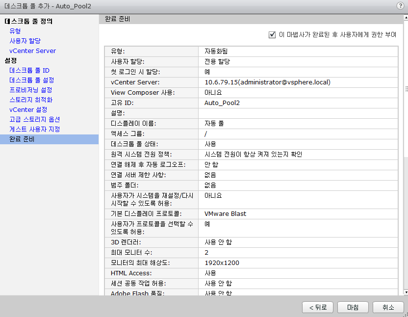 # 5. 풀 사용 권한 부여, 사용자 가상 머신 할당