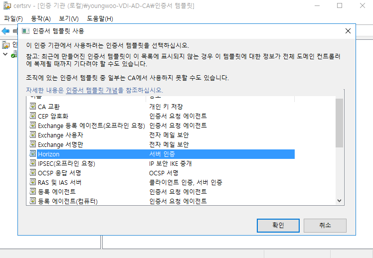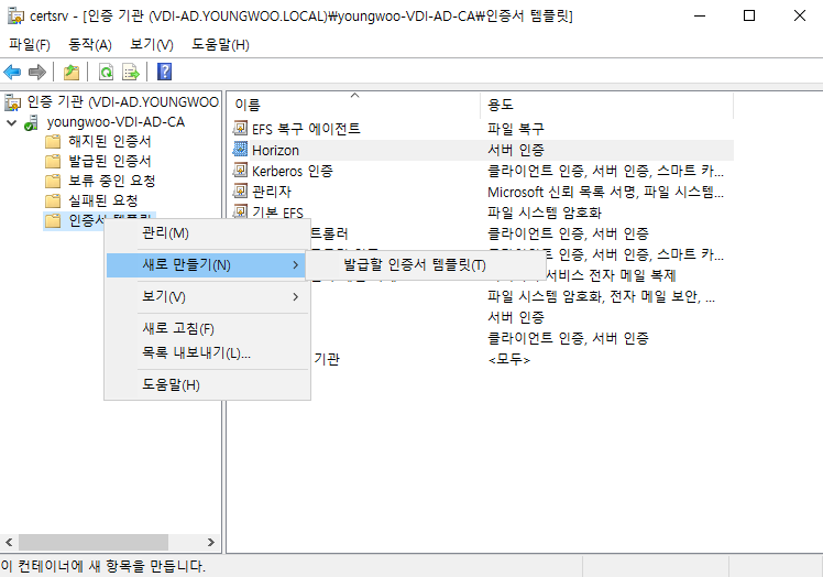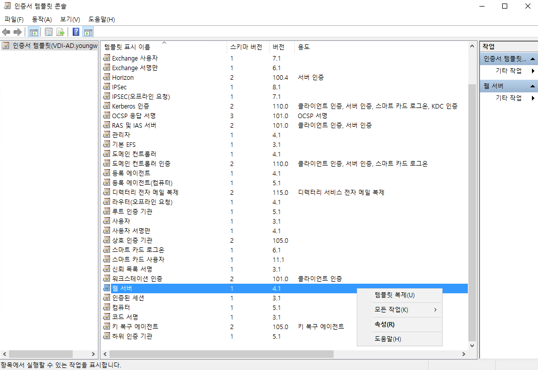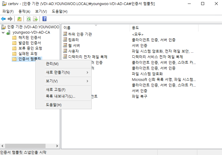 - 이 포스팅에서는 CA 서버의 인증서 템플릿을 활용합니다.