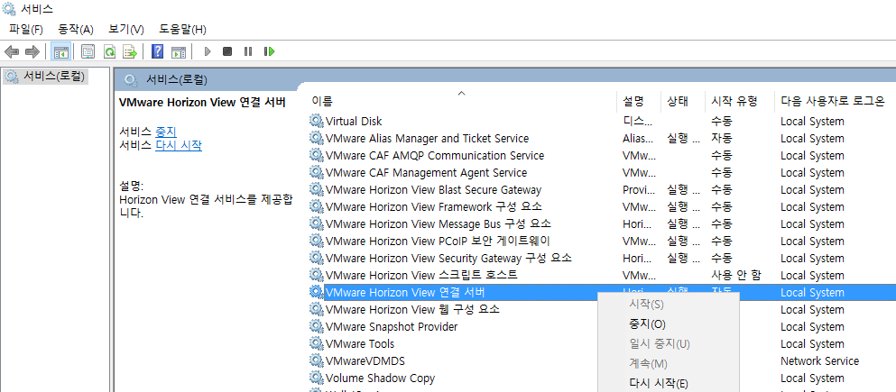 서비스가 재시작 되는 동안에는 해당 Connection Server 의 기능을 사용할 수 없습니다.