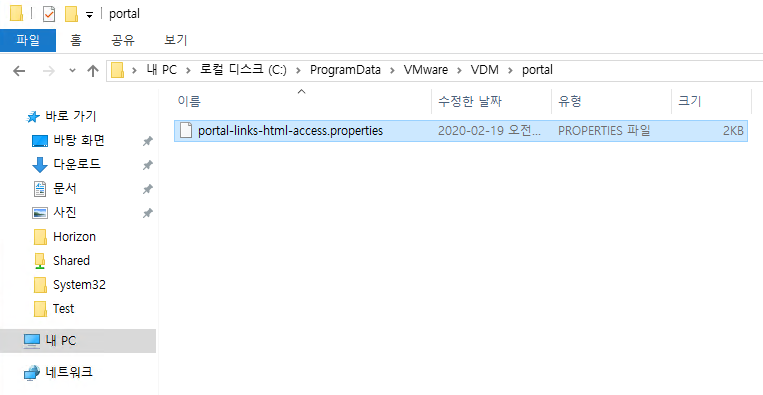 4. C:\ProgramData\VMware\VDM\portal 로 이동 - portal-links-html-access.properties 파일 편집