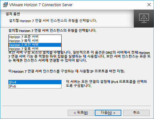 - Connection Server 설치 파일은 표준 서버, 복제 서버, 보안 서버, 등록 서버 설치 용도로도 사용 가능합니다.