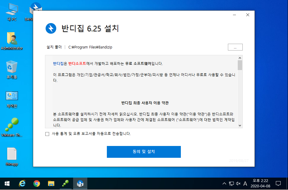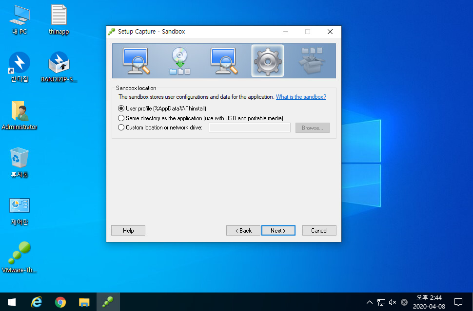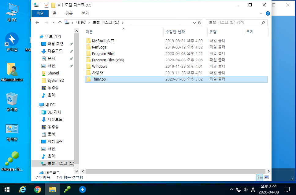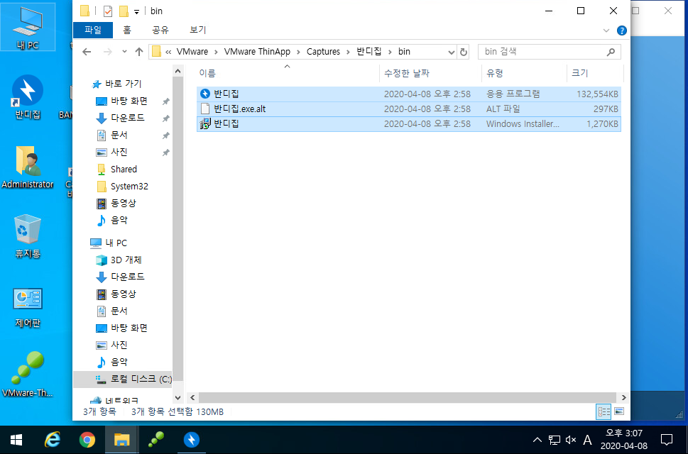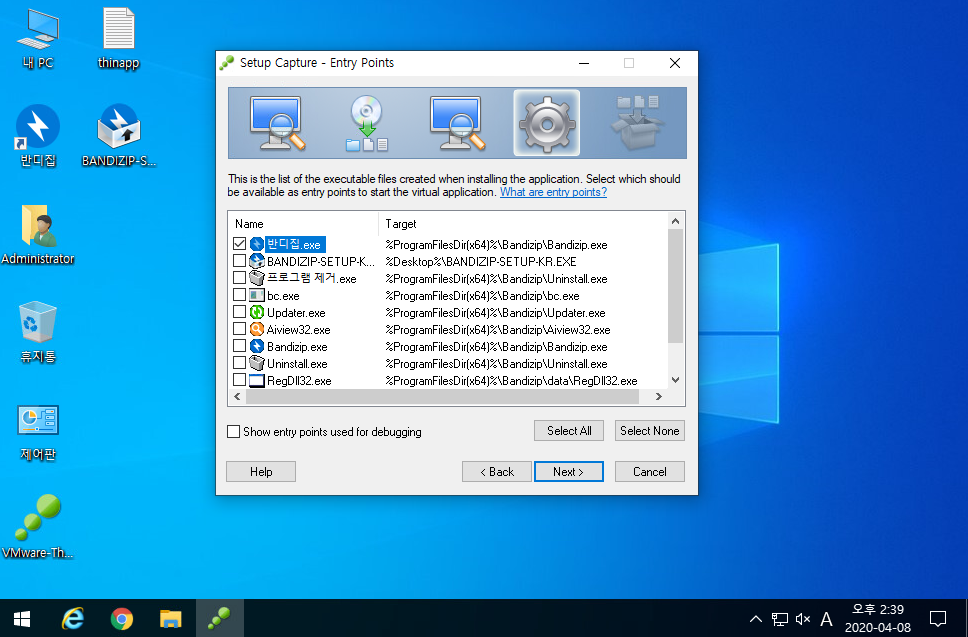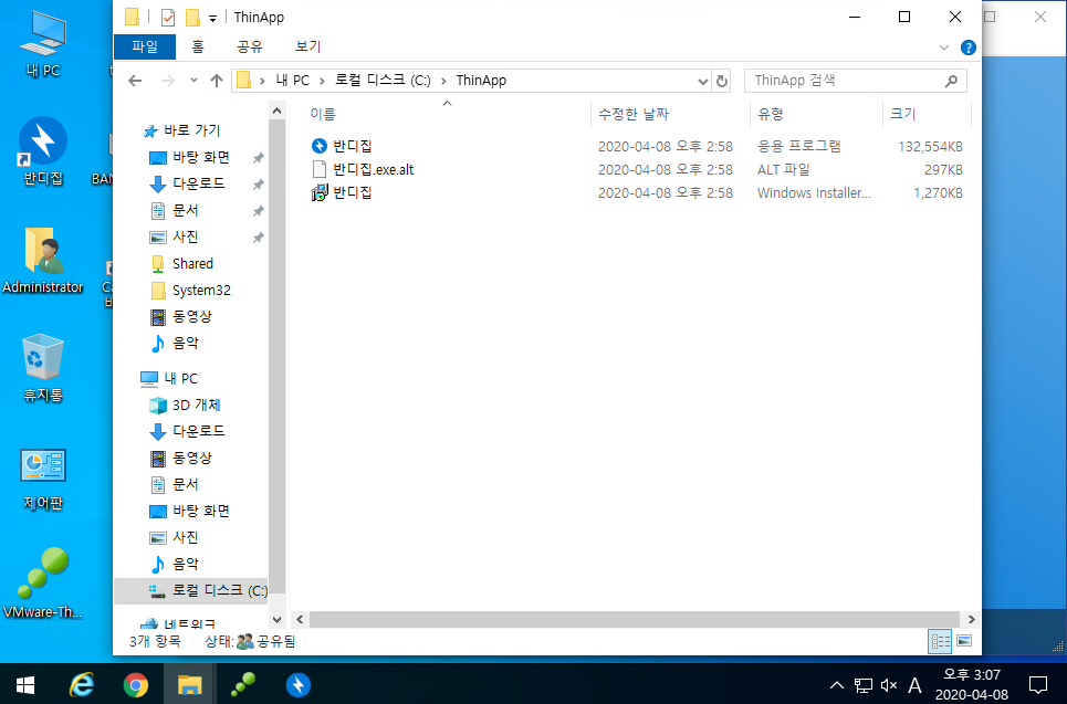 설치 시 지정한 Project Location 경로 (C:\Program Files (x86)\VMware\VMware ThinApp\Captures\반디집\bin) 로 이동 및 패키징된 Application 파일 복사Application 공유 폴더에 붙여넣기