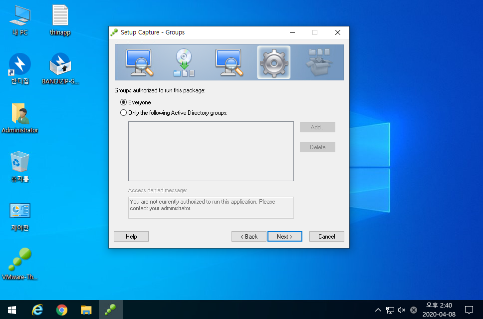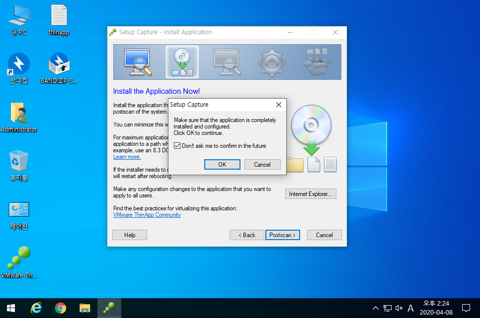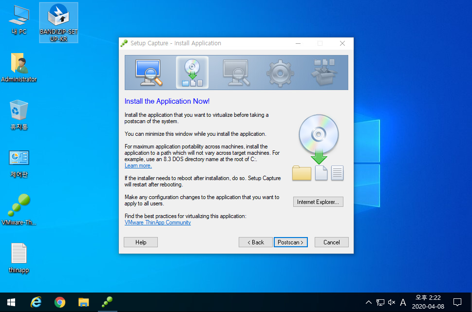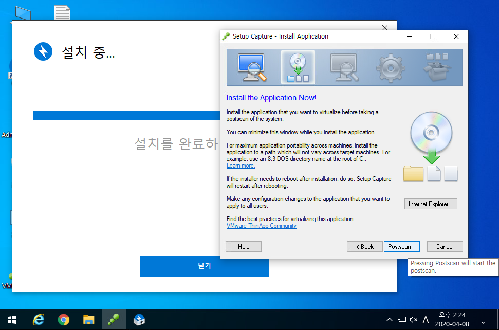 - 순서는 ThinApp 구성 - PreScan - Install Application - PostScan - Permission - Build - 사용자 할당 순으로 진행합니다.