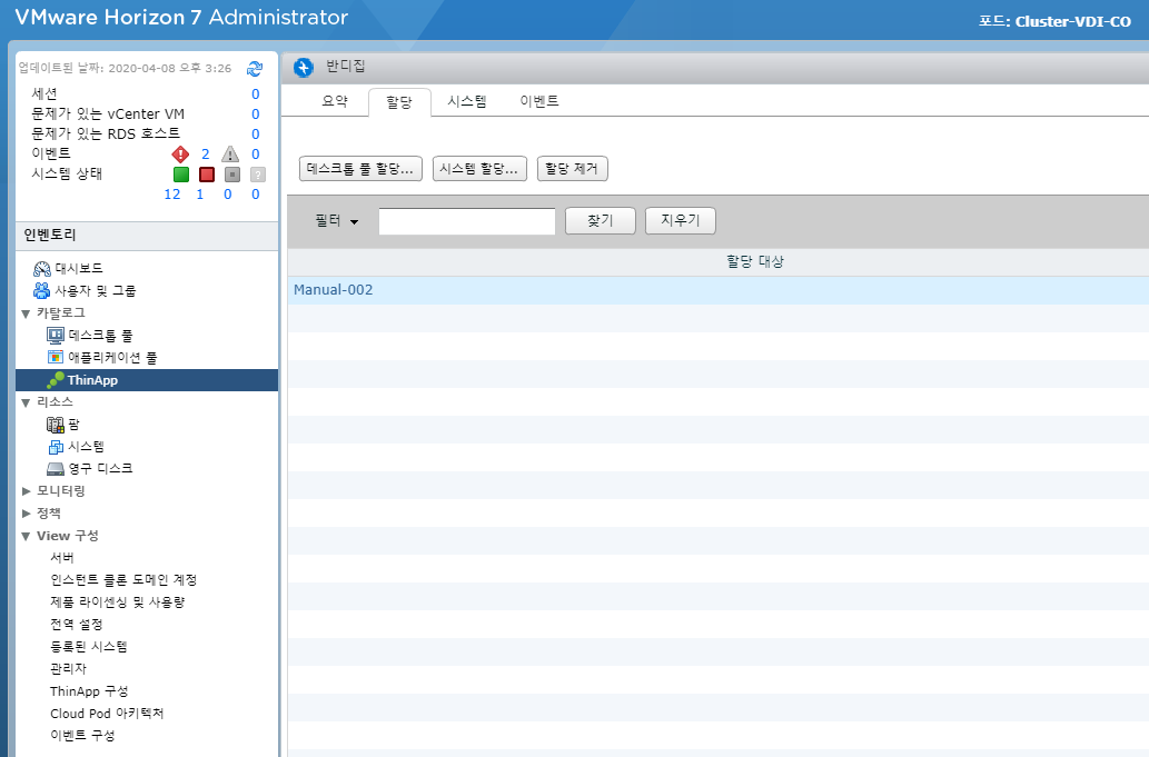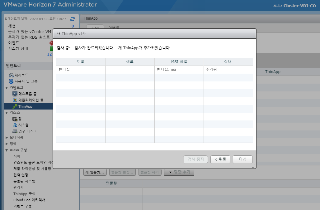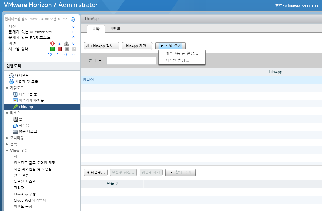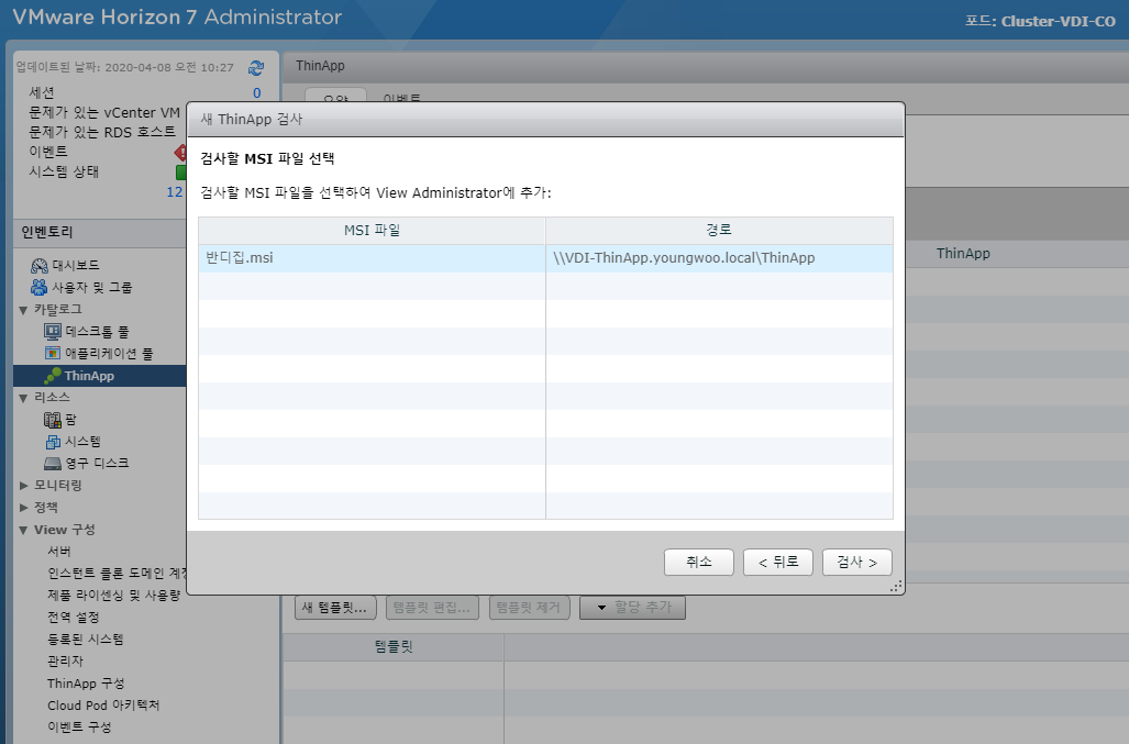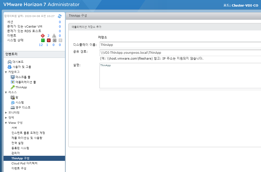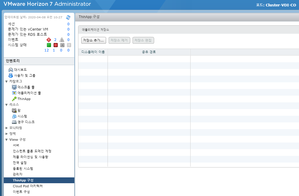 Horizon Administrator 접속 - View 구성 - ThinApp 구성 - 저장소 추가