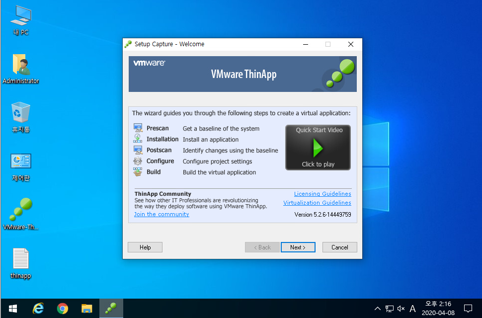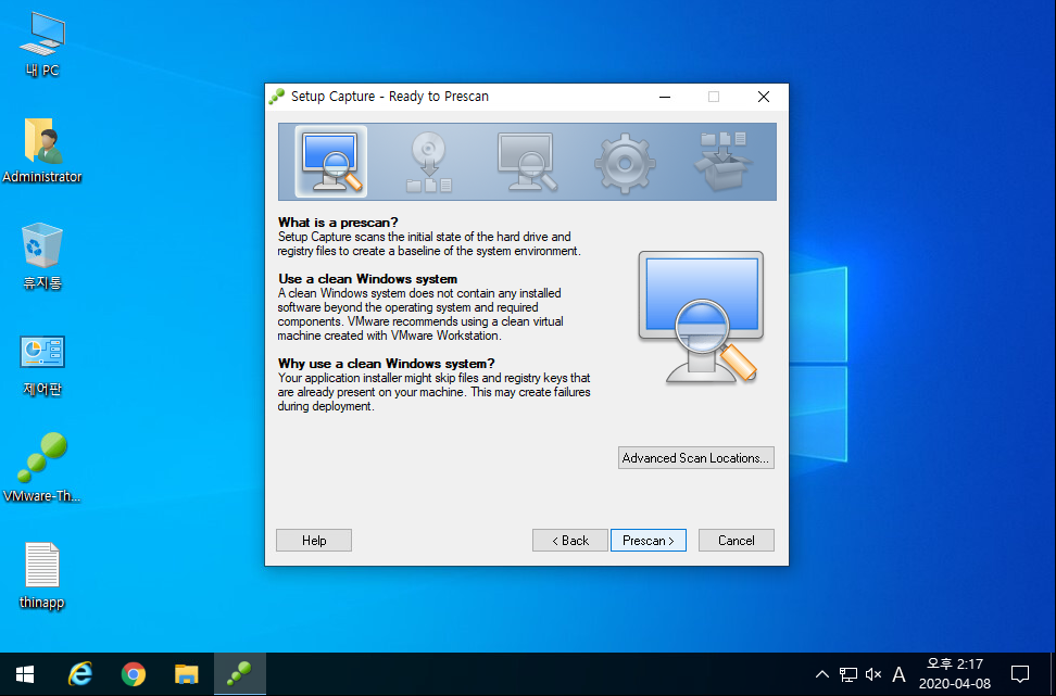 - Clean Image VM 및 ThinApp 설치 파일을 준비해주세요.