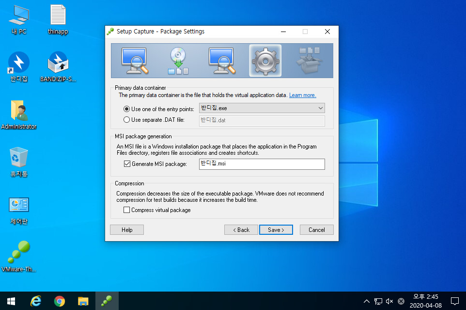 Horizon 과 통합하여 배포하기 위해 Generate MSI Package 항목 체크 - Save