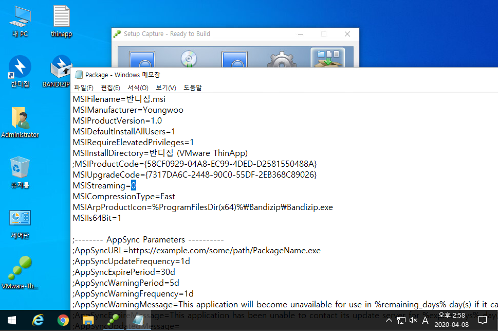 MSIStreaming=0 -> 1로 값 변경 (Horizon 과 통합되어 해당 Application 배포 시 전체 / 스트리밍 두가지 방식을 지원) - 저장