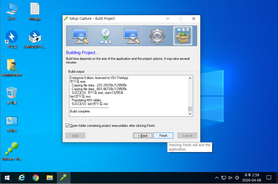 설치 시 지정한 Project Location 경로 (C:\Program Files (x86)\VMware\VMware ThinApp\Captures\반디집\bin) 로 이동 및 패키징된 Application 파일 복사Application 공유 폴더에 붙여넣기