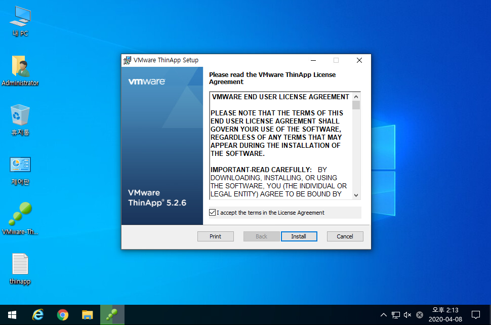 - Clean Image VM 및 ThinApp 설치 파일을 준비해주세요.