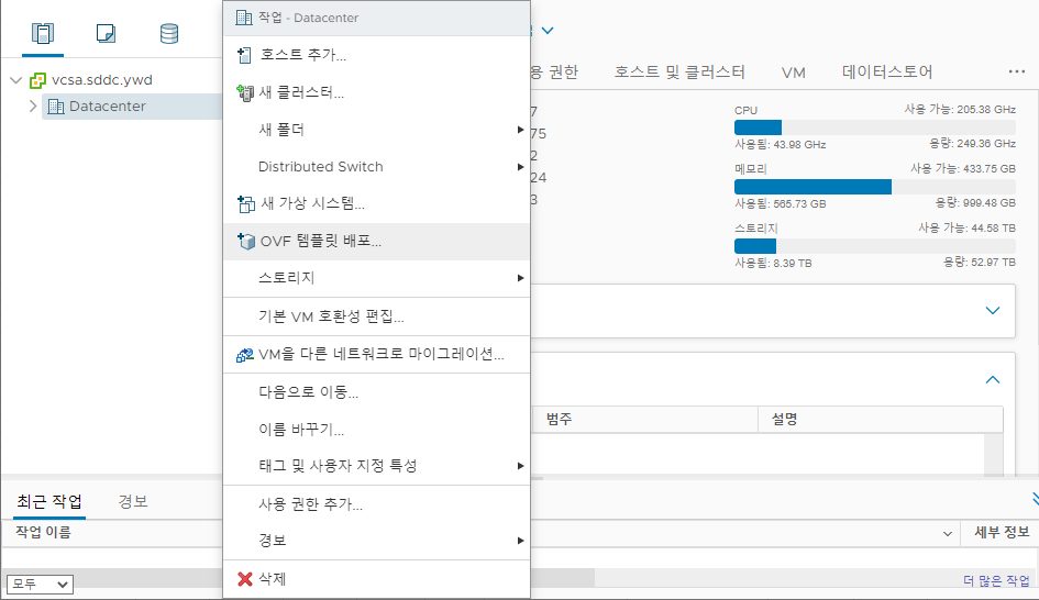 vSphere Client 접속 - OVF 템플릿 배포