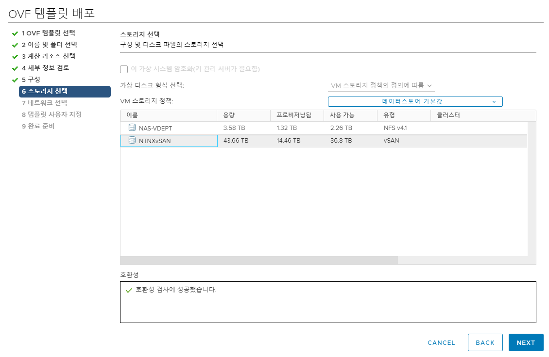 구성 및 디스크 파일의 스토리지 선택 - 다음