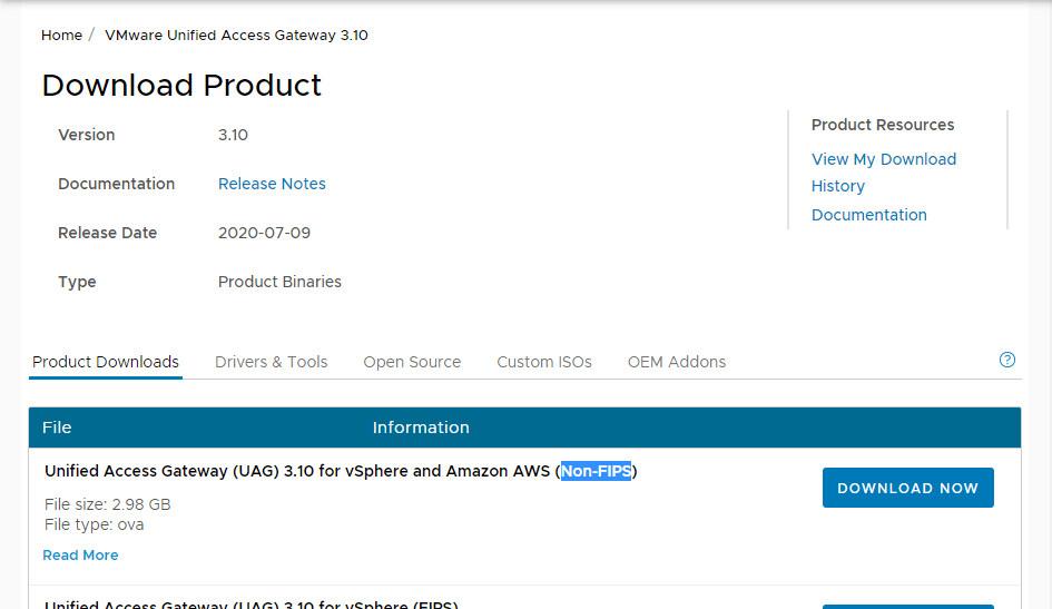 # 3. UAG ova 파일 다운로드 (Non-FIPS)