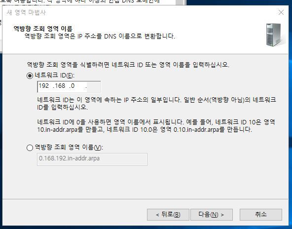 # 5. DNS - 역방향 조회 - 새 영역 생성- 사용할 ip 대역 값 입력