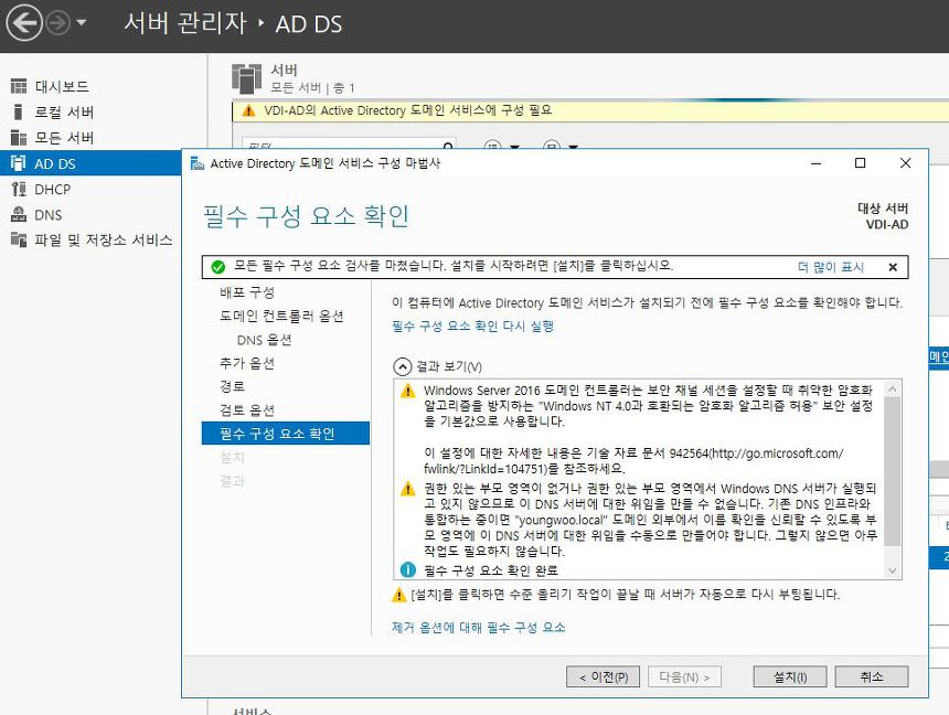 # 2. 서버 관리자 - 역활 및 기능 추가 - AD, DNS, DHCP 역활 추가 (운영 방향에 따라 DNS와 DHCP 구성이 필요할 수 있습니다. 이 포스팅에서는 해당 내용은 다루지 않겠습니다. 구글링 해보시면 많이 나옵니다..)