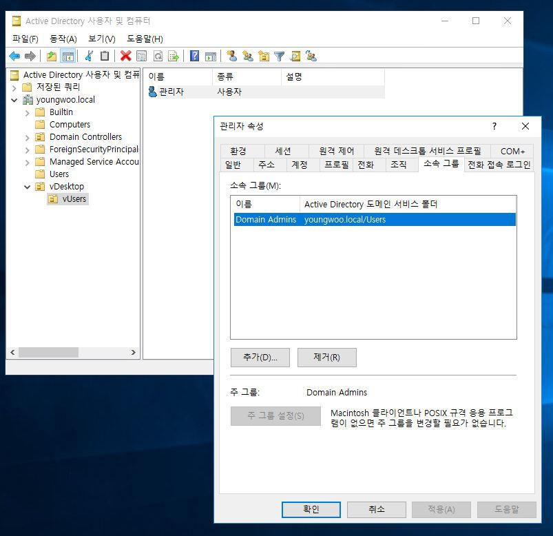 # 4. VDI 용 OU 생성 및 관리자, 사용자 계정 생성 및 권한 부여 (이 부분은 원하시는 대로 하세요.)