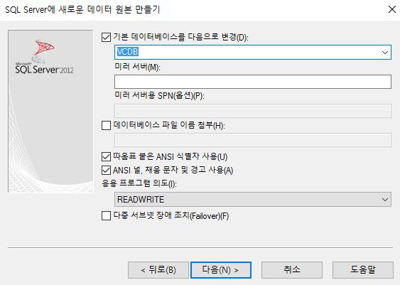 - 생성하셨던 vCenter DB 를 기본 DB로 지정해 주세요.