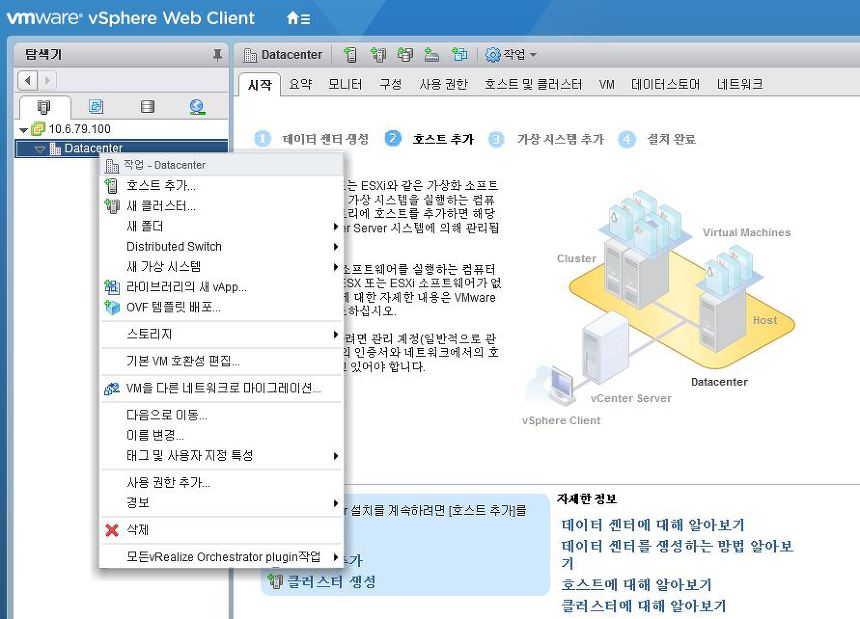 - Datacenter, Cluster 생성 하시고 Host 추가해 주세요.