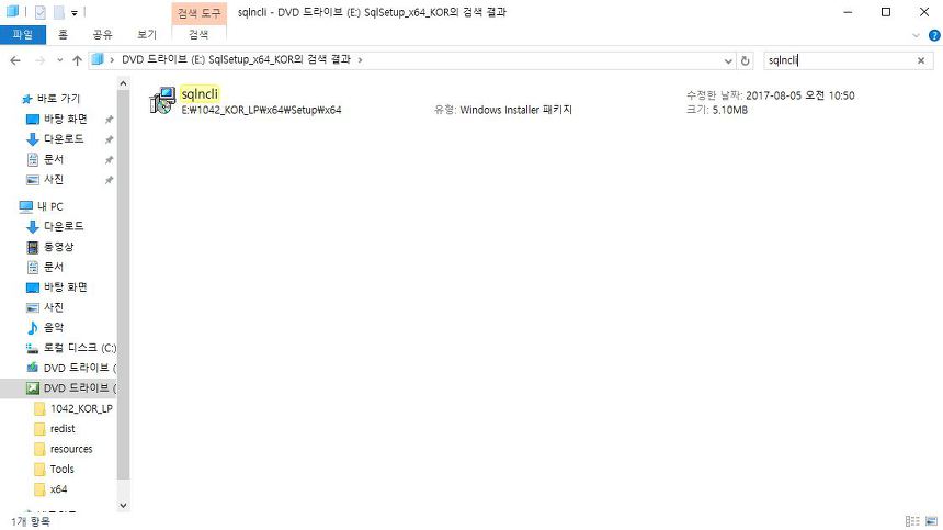 - MS-SQL Server 설치 ISO 파일에서 sqlncli 검색하세요. (SQL Server Native Client 설치 파일 입니다.)