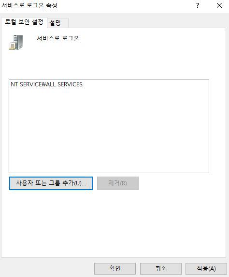 - 해당 항목은 로컬 보안 정책 에서 권한 추가 시켜야 합니다.