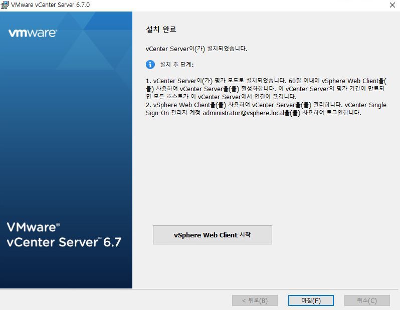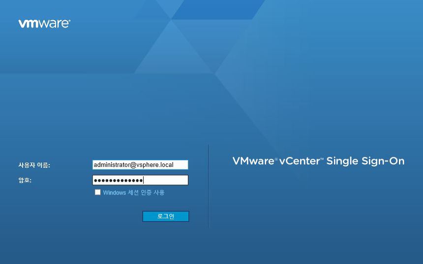 - Single Sign-On ID (administrator@vsphere.local), 암호 입력하세요.