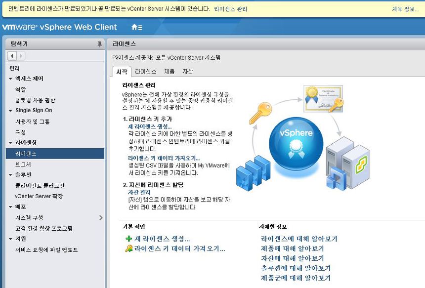- 자산 관리를 통해 ESXi, vCenter 라이센스키 할당해주세요.