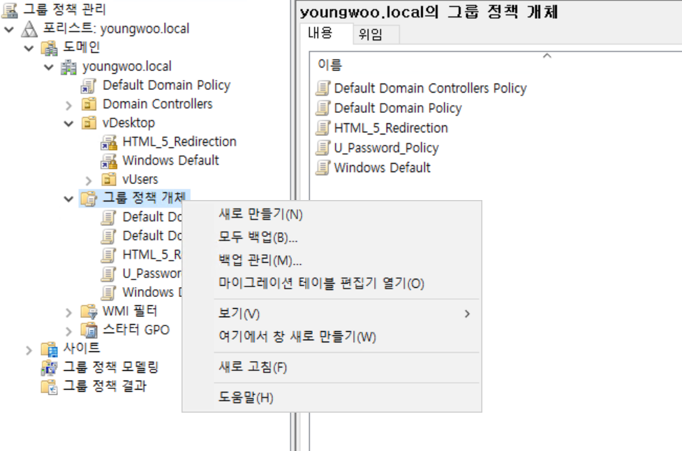 - Active Directory에 View에 대한 정책을 내릴 수 있도록 추가 설치하는 GPO 입니다.