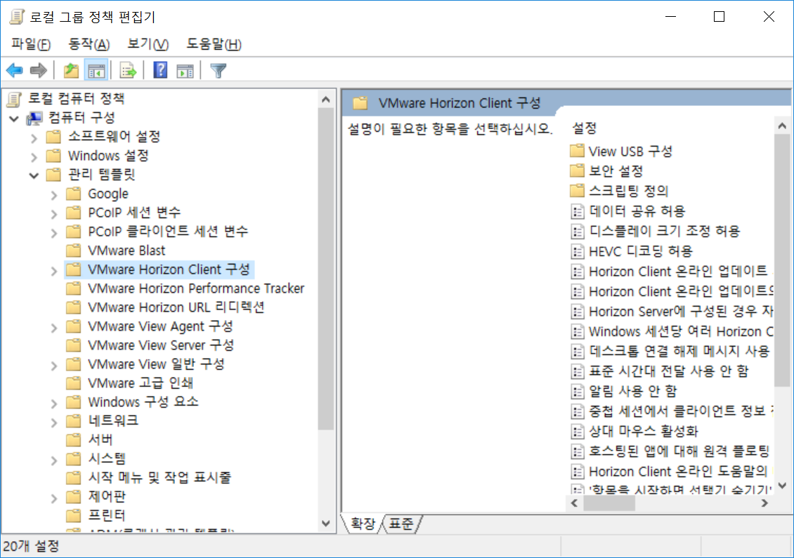# 3. gpedit.msc 를 실행하셔서 VMware View에 대한 정책 목록을 확인하세요.