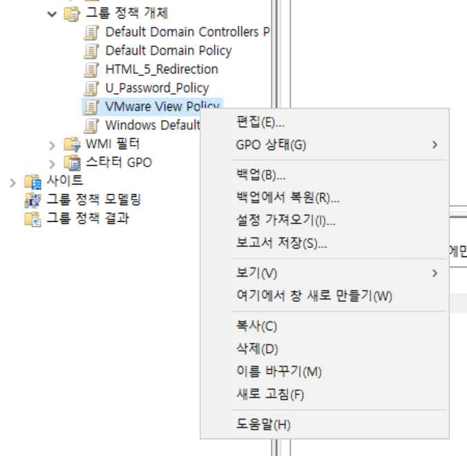 # 4. gpmc.msc 를 실행하셔서 VMware View Policy 에서 원하는 값에 대한 정책을 편집하고,
